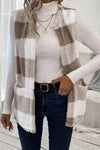 Sherpa Plaid Open Front Vest Coat