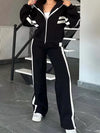 Full Size Contrast Stripe Zip Up Jacket and Pants Set Plus Size