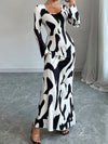Abstract Print Long Sleeve Maxi Dress