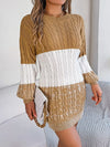 Color Block Cable Knit Sweater Dress with Textured Pattern