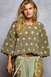 POL Contrast Crochet Cropped Knit Top